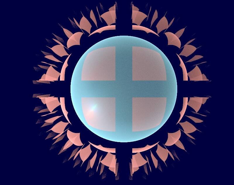 Modifikationen: Farbe, Verschiebung der Dreiecke (Triangles) hin zu vollkommener Symmetrie. Das ist zwar schon nahe an der Perfektion, ist mir aber doch zu langweilig...