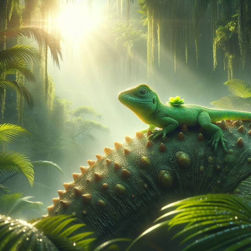 Die XS-Echse reist hier ziemlich luxuriös auf dem Rücken der XL-Echse ... generiert mit dem Copilot Designer
