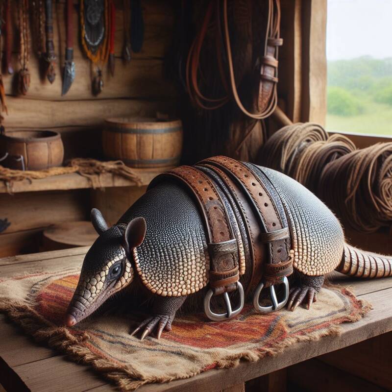 das Gürteltier - rechts in wenig glanzvoller Umgebung, aber immerhin begurtet - generiert mit Copilot